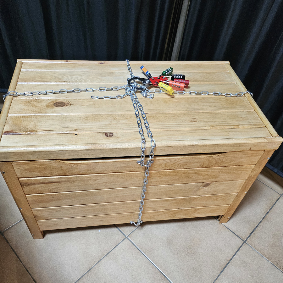 ? Un coffre fermé par des chaînes et 6 cadenas (contenu au choix : vin d’honneur, bouquet de la mariée …)